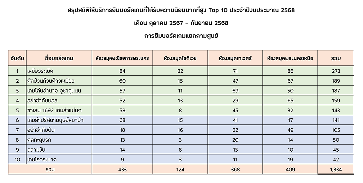 สถิติการยืมบอร์ดเกมBy admin / 15 January, 2026 อันดับ 1 อันดับ 2 อันดับ 3 อันดับ 4 อันดับ 5 Post Views: 5