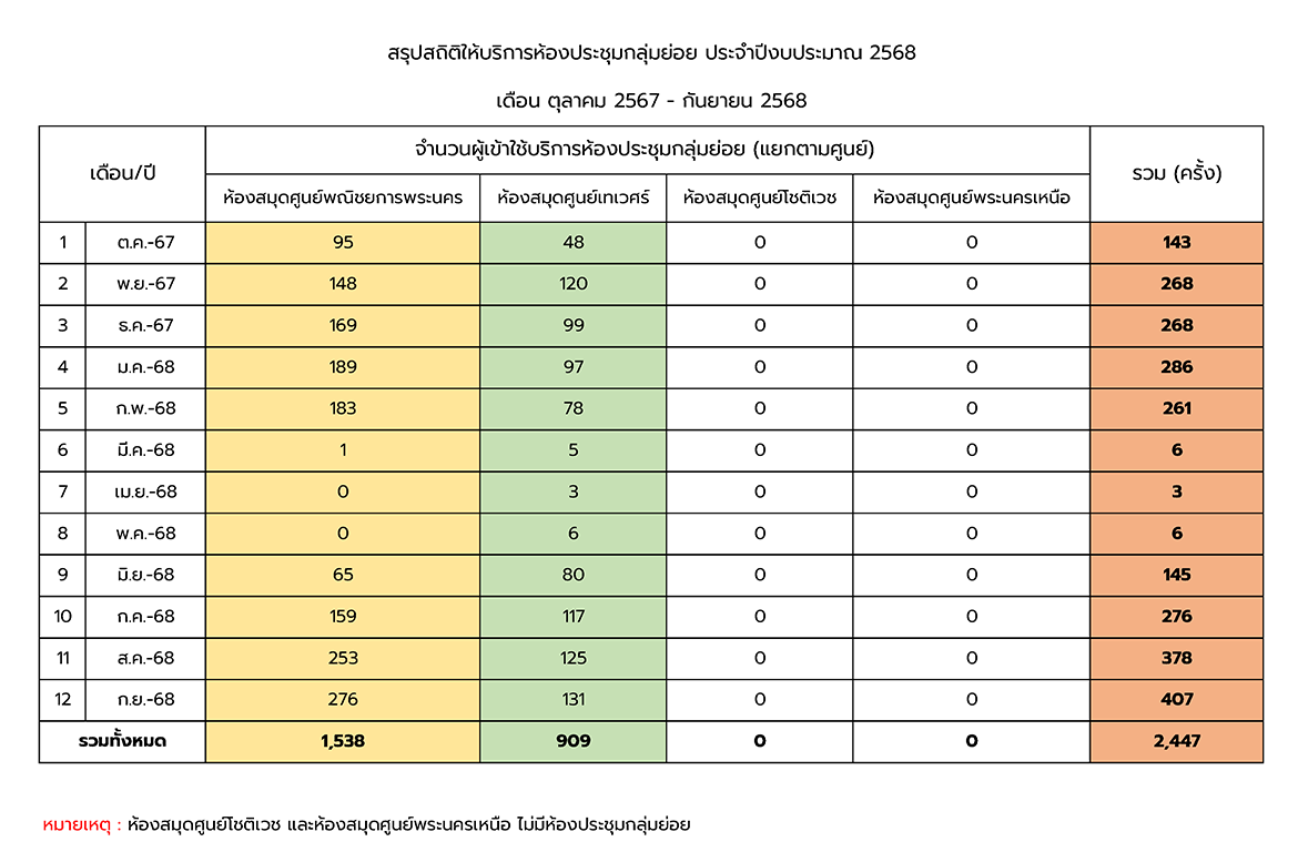 สถิติการใช้ห้องประชุมกลุ่มย่อย
