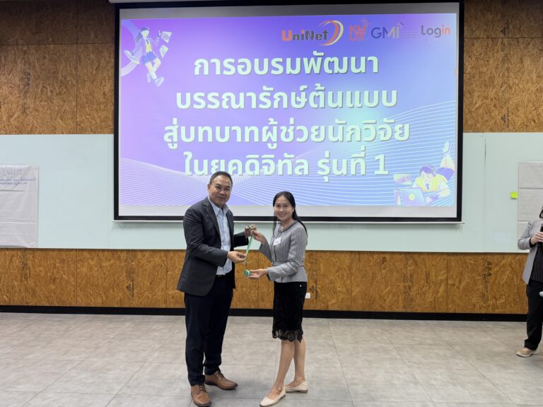 เมื่อวันที่ 5 มีนาคม 2569 ที่ผ่านมา นางสุมาลี พรเจริญ หัวหน้างานวิทยบริการ ได้เข้าร่วมอบรม “การพัฒนาบรรณารักษ์ต้นแบบสู่บทบาทผู้ช่วยนักวิจัยในยุคดิจิทัล” ซึ่งจัดโดยศูนย์วิยนวัตกรรมโลจิสติกส์ มหาวิทยาลัยเทคโนโลยีพระจอมเกล้าธนบุรี (มจธ.) ณ อาคาร KX (Knowledge Xchange) กรุงเทพมหานคร