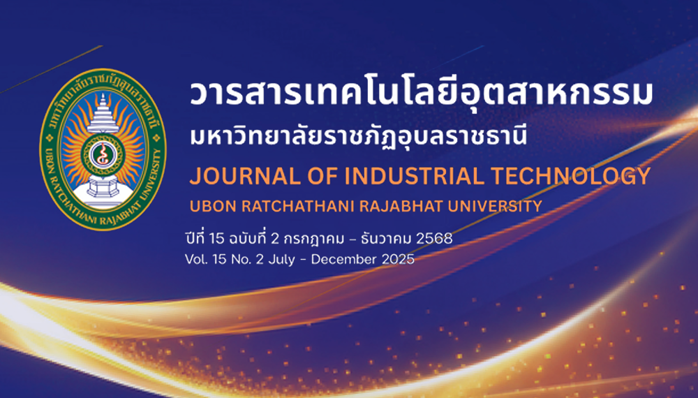 กองบรรณาธิการวารสารเทคโนโลยีอุตสาหกรรม คณะเทคโนโลยีอุตสาหกรรม มหาวิทยาลัยราชภัฏอุบลราชธานี ได้จัดทำวารสารเทคโนโลยีอุตสาหกรรม เพื่อเผยแพร่บทความทางวิชาการ จากวิทยานิพนธ์ ของนักศึกษาในระดับบัณฑิตศึกษา บทความและงานวิจัยของคณาจารย์ นักศึกษา และผู้ทรงคุณวุฒิ ทั้งระดับห้องถิ่นและระดับสากลในสาขาวิชาต่าง ๆ ในการนี้ จึงขอมอบวารสารเทคโนโลยีอุตสาหกรรม ปีที่ ๑๔ ฉบับที่ ๒ จำนวน ๑ เล่ม เพื่อให้ท่านได้เผยแพร่และใช้ประโยชน์ต่อไป ทั้งนี้ วารสารเทคโนโลยีอุตสาหกรรม อยู่ในฐานข้อมูล TCI กลุ่มที่ ๑ (๒๕๖๔ –