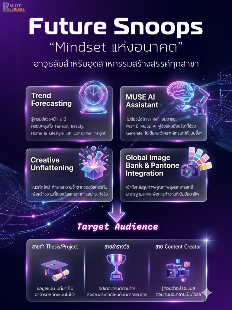 ใครที่เบื่อกับการตามเทรนด์เดิมๆ ที่คนอื่นทำไปหมดแล้ว เตรียมตัวมา Reset ความคิดใหม่ที่ “Future Snoops” ฐานข้อมูลที่พร้อมเปิดให้พวกเราได้ใช้แบบ Full Access